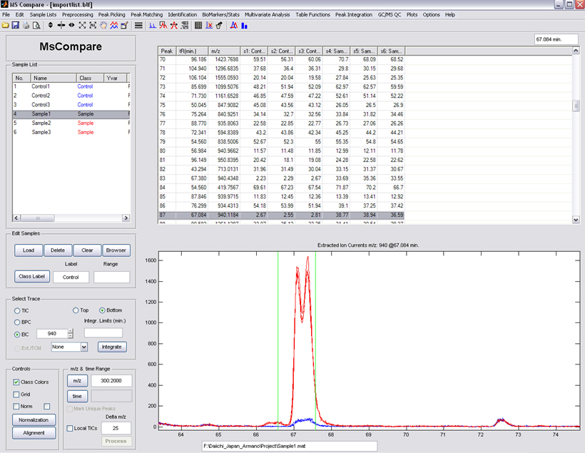 The MsCompare Module is specialized in handling series of samples from Metabolomics and BioMarker Discovery projects. The module’s engine contains two very fast high resolution (or nominal) algorithms to find all the Peaks in allĀ Samples: